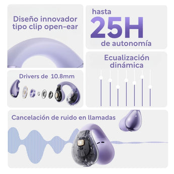 - Diseño Deportivo con Clip de Oreja: Ajuste seguro y cómodo con hebilla colgante en Z inversa, ideal para uso prolongado y actividades físicas.