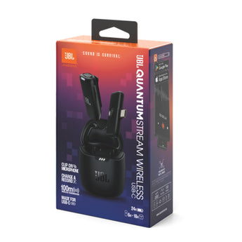 El JBL Quantum Stream Wireless USB‑C es un micrófono clip‑on omnidireccional diseñado para creadores de contenido que necesitan grabar y transmitir con calidad profesional desde cualquier lugar. Su conexión plug & play mediante dongle USB‑C ofrece baja latencia y un alcance de hasta 100 m, mientras que su batería interna y el estuche de carga brindan hasta 24 h de grabación total (6 h micrófono + 18 h estuche) con función de carga rápida. Compatible con la app JBL Headphones y el software QuantumENGINE, permite ajustar ganancia, supresión de ruido y más, garantizando siempre sonido claro y definido.