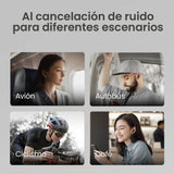 - ANC Adaptativo: Hasta –28 dB, ajustable a diferentes entornos (avión, calle, cafetería)