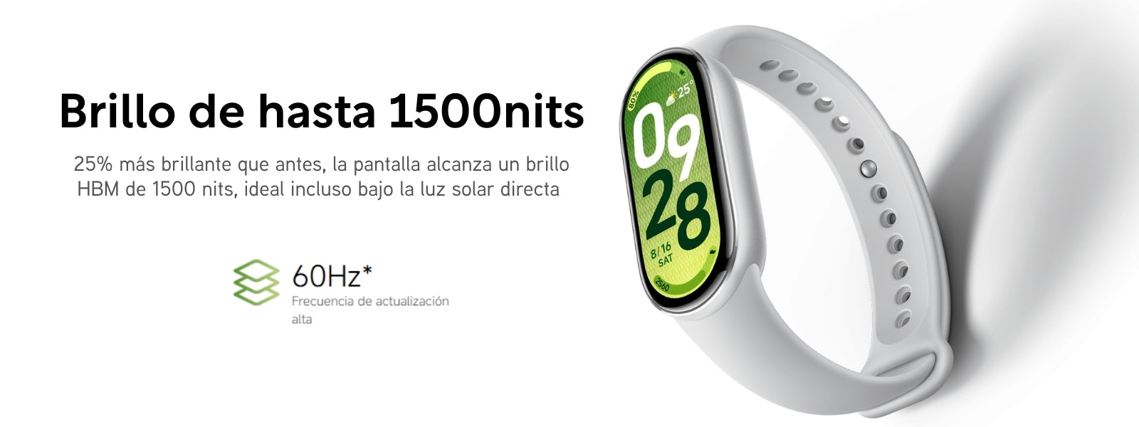 - Pantalla: AMOLED de 2.1" (512 x 300 px), brillo hasta 600 nits y tasa de refresco de 60 Hz