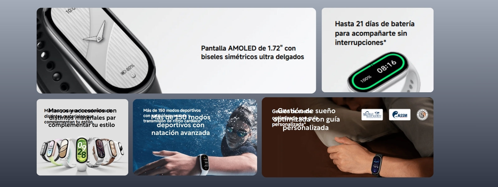 - Sensores: Ritmo cardíaco 24h, SpO₂, monitor de estrés y sueño, monitor de sueño con seguimiento de siesta