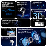 Incorporan 4 micrófonos con cancelación de ruido ambiental (ENC) que mejoran la claridad de tu voz en cualquier entorno. Perfectos para videollamadas o reuniones en movimiento.