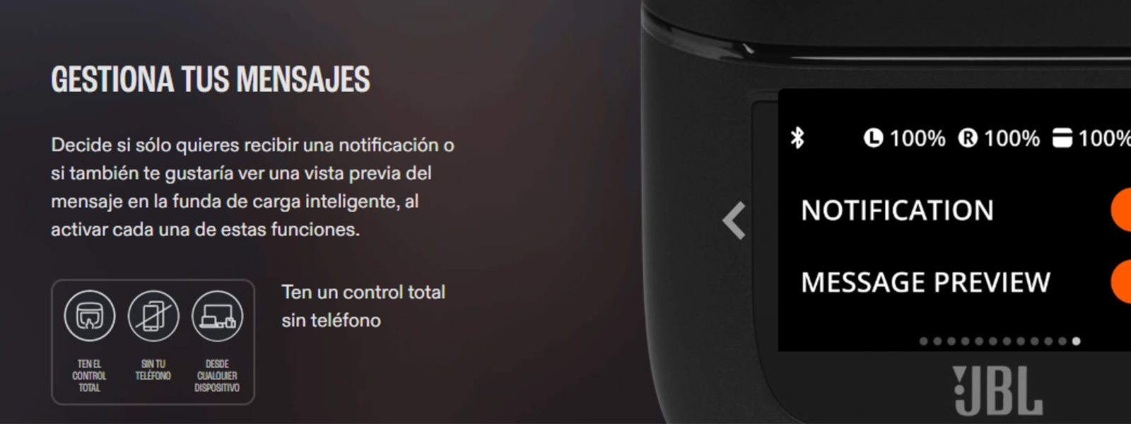 Controla la música, llamadas, ANC, mensajes y más directamente desde el estuche sin sacar el teléfono, una innovación única en su clase.