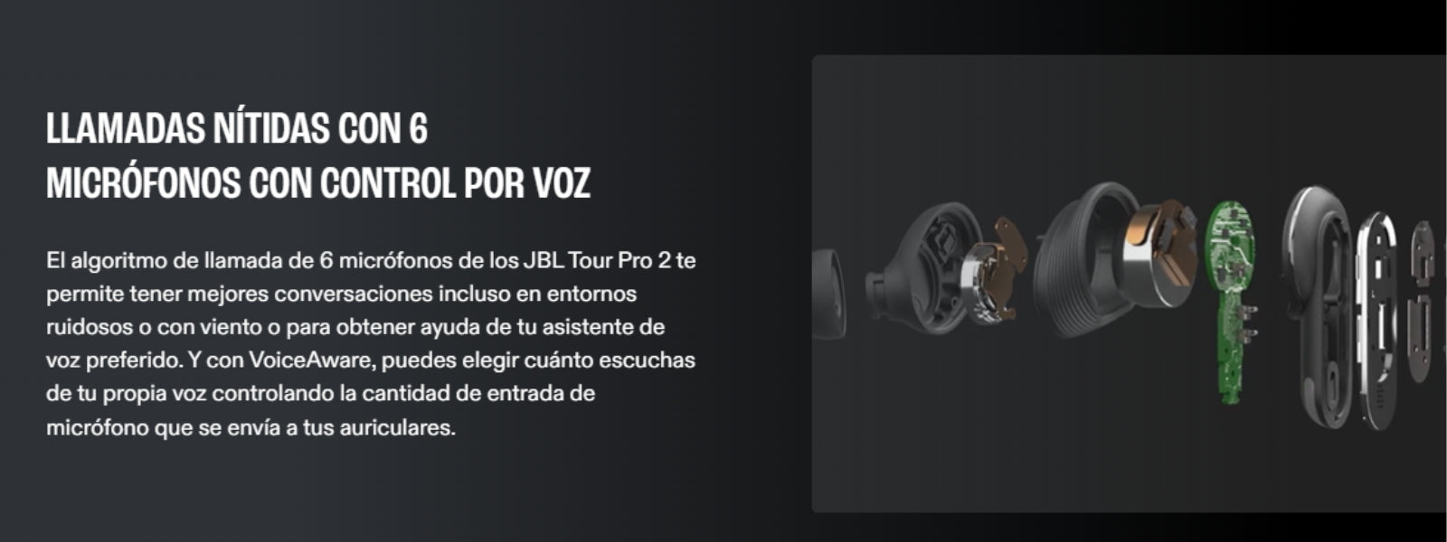 - Cancelación de ruido adaptativa y sonido JBL Pro
