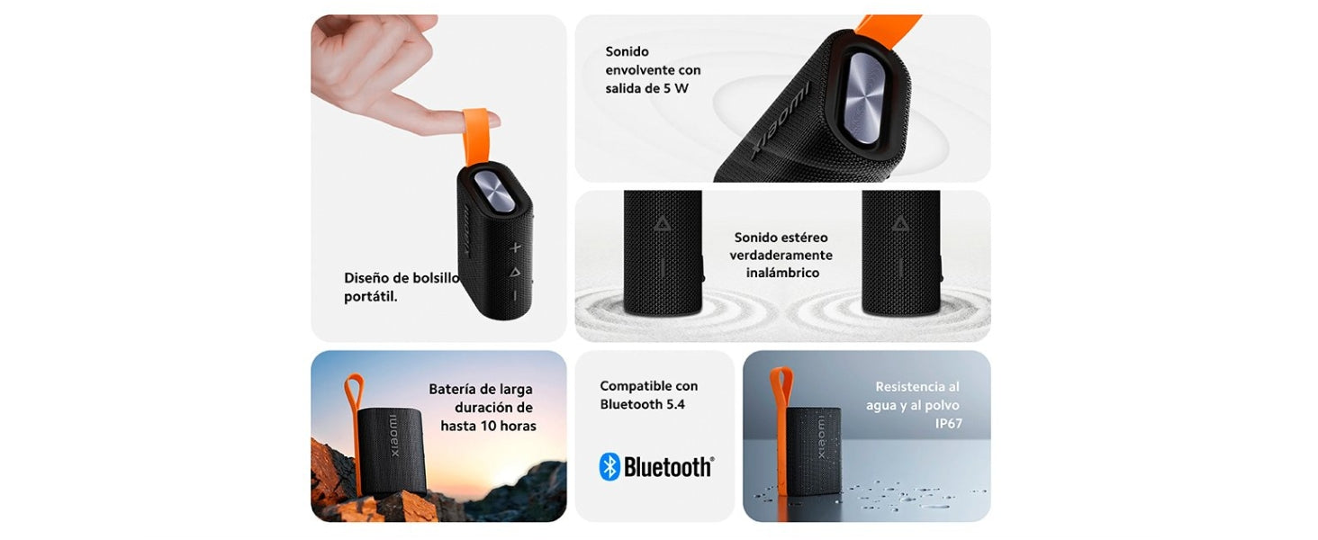 La Xiaomi Sound Pocket es una bocina Bluetooth portátil con sonido de alta calidad, diseño compacto y moderno, ideal para llevar música a todas partes. Resistente al agua y con batería duradera, es perfecta para exteriores.